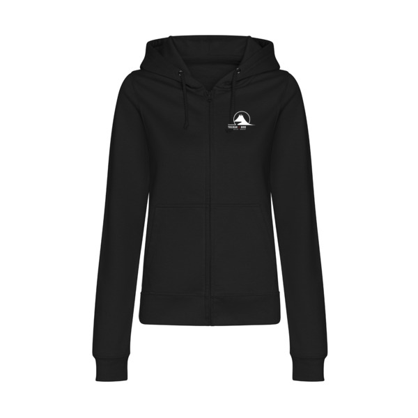 Sweat zippé sur toute la longueur. Coupe décontractée pour femme. Zip principal YKK en plastique recouvert. Ourlet à double surpiqûre. Capuche doublée. Cordons unis Poches kangourou. Une simple étiquette décollable facilite le changement de marque. Intérieur en molleton gratté. Poignets et ourlet côtelés. Une face en coton doux permet de créer une surface d'impression idéale. Certifications WRAP, Sedex et PETA APPROVED VEGAN.
